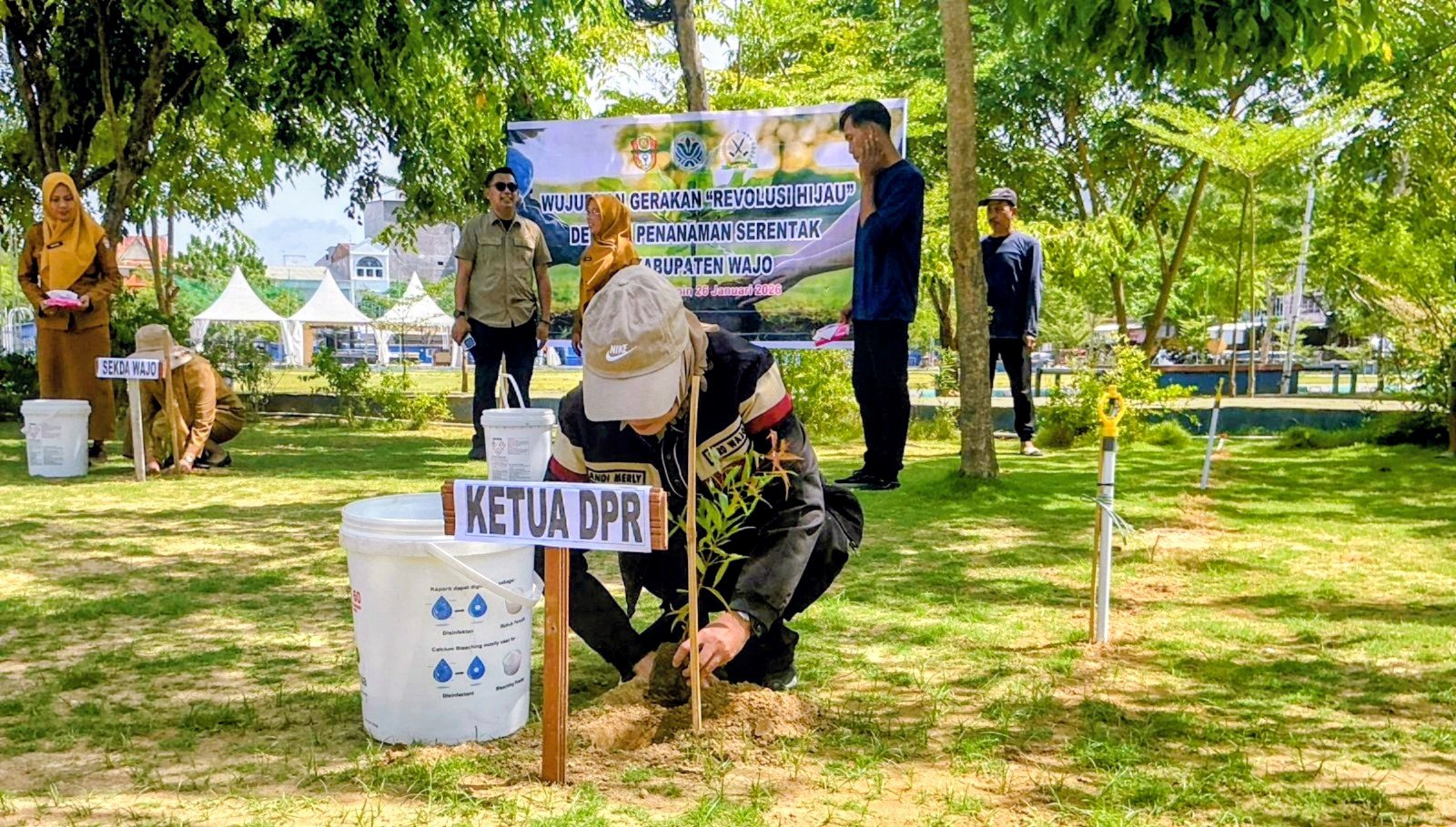 Kegiatan penanaman pohon serentak ini diikuti langsung oleh Bupati Wajo Andi Rosman, unsur Forkopimda, Sekretaris Daerah Kabupaten Wajo, serta Kepala Dinas Lingkungan Hidup Kabupaten Wajo. Aksi ini diharapkan mampu meningkatkan kesadaran kolektif masyarakat akan pentingnya menjaga kelestarian lingkungan sekaligus mendukung pembangunan daerah yang berwawasan lingkungan.
