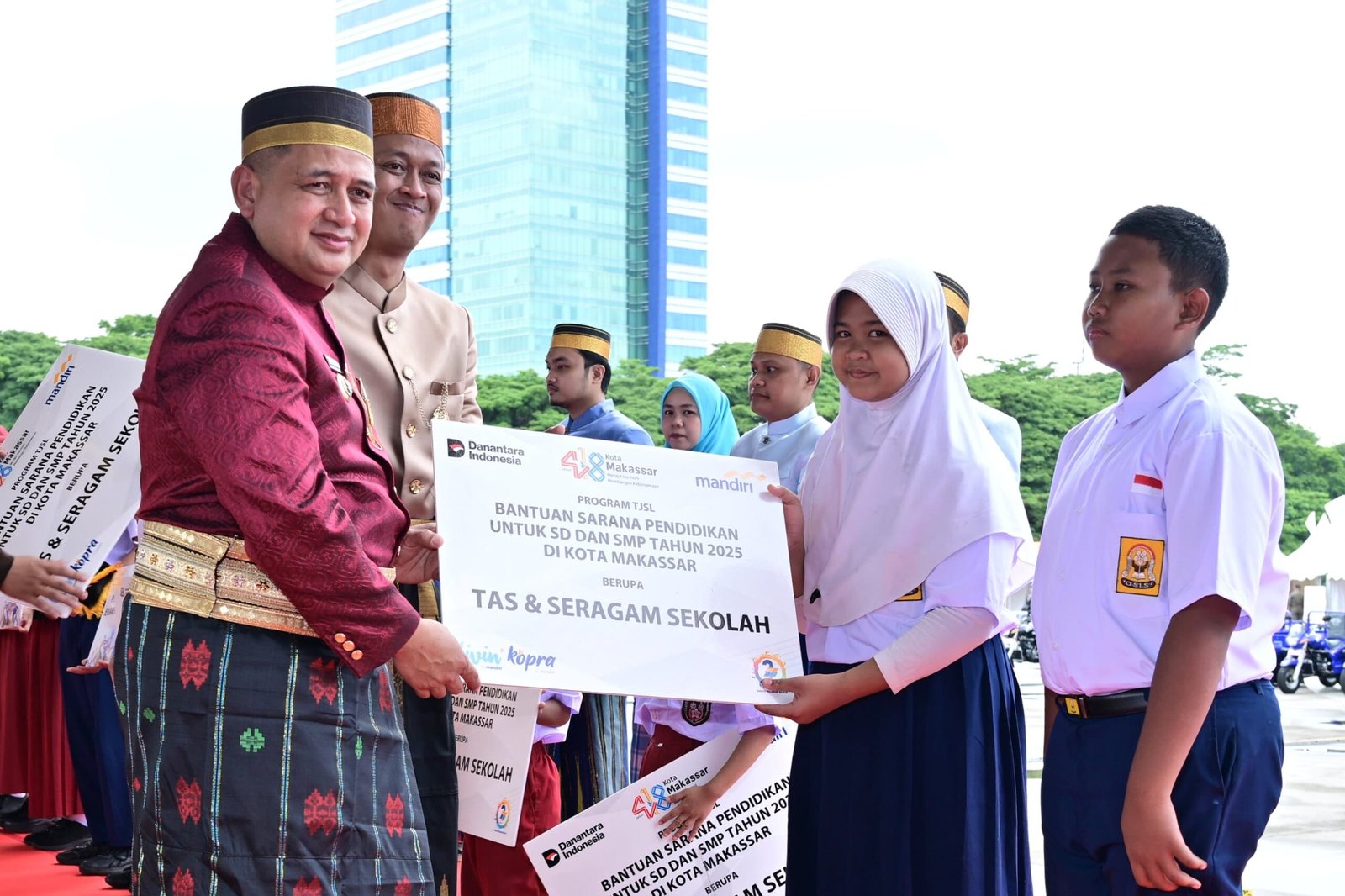 Bantuan sosial dan ajang apresiasi tersebut diberikan kepada berbagai elemen masyarakat, mulai dari pelajar, pegawai hingga instansi kolaborator. Penghargaan diserahkan langsung oleh Wali Kota Makassar Munafri Arifuddin dan Wakil Wali Kota Makassar Aliyah Mustika Ilham dan Didampingi Panji Priasmoro – Vice President Bank Mandiri Region X/ Sulawesi & Maluku
