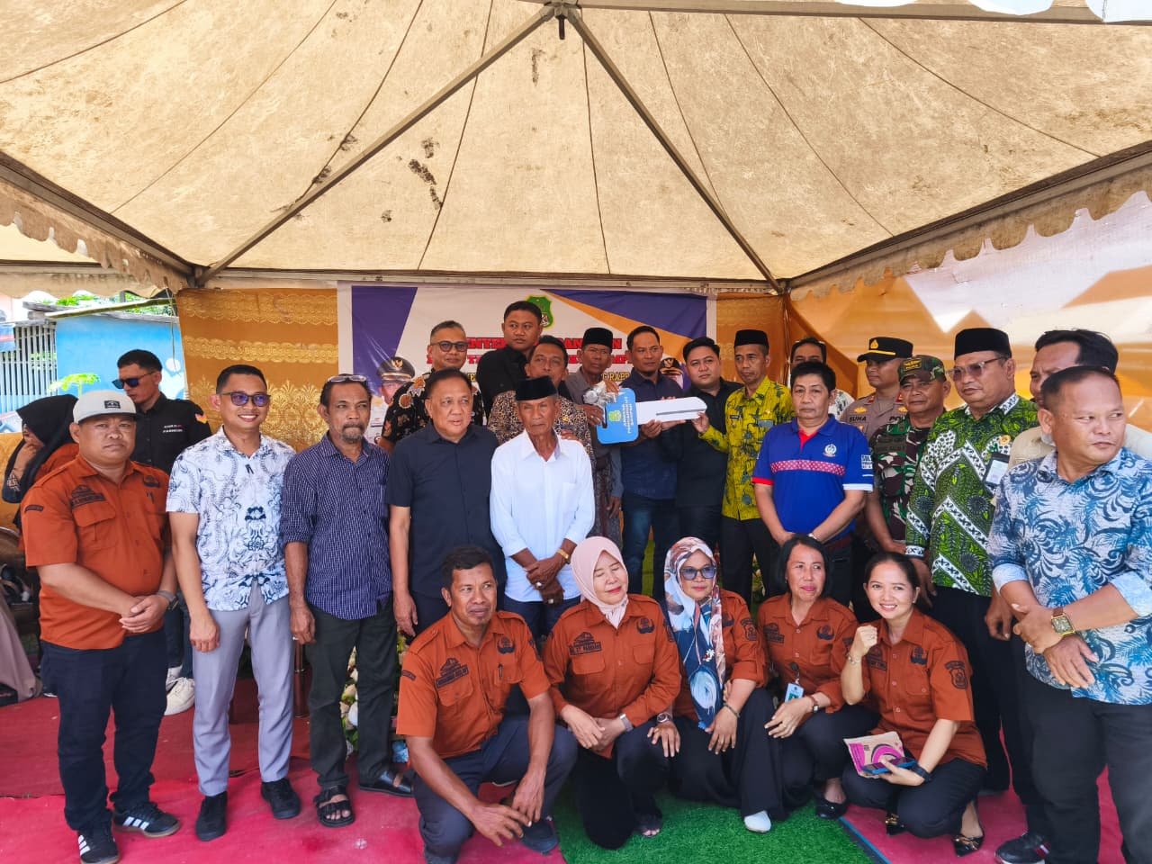 Penyerahan dilakukan di halaman Rumah Dinas Camat Tellu Limpoe yang kini kembali ditempati setelah tidak digunakan selama 15 tahun. Hadir mendampingi Bupati, Ketua TP PKK Sidrap Haslindah Syaharuddin, Kadis Lingkungan Hidup Muhammad Yusuf, Plt. Kadis Koperasi UKM Nakertrans Adli Lukman, dan Kabag Pemerintahan Fandy Anshary.