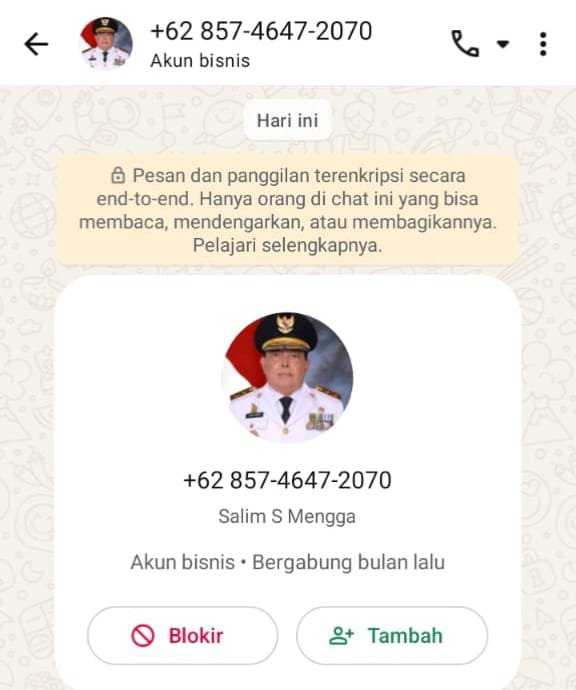 Pemerintah Provinsi Sulawesi Barat telah memastikan bahwa nomor tersebut bukan milik Wakil Gubernur. Mereka menegaskan bahwa pejabat negara tidak akan pernah meminta data pribadi atau menawarkan bantuan langsung melalui pesan WhatsApp pribadi.