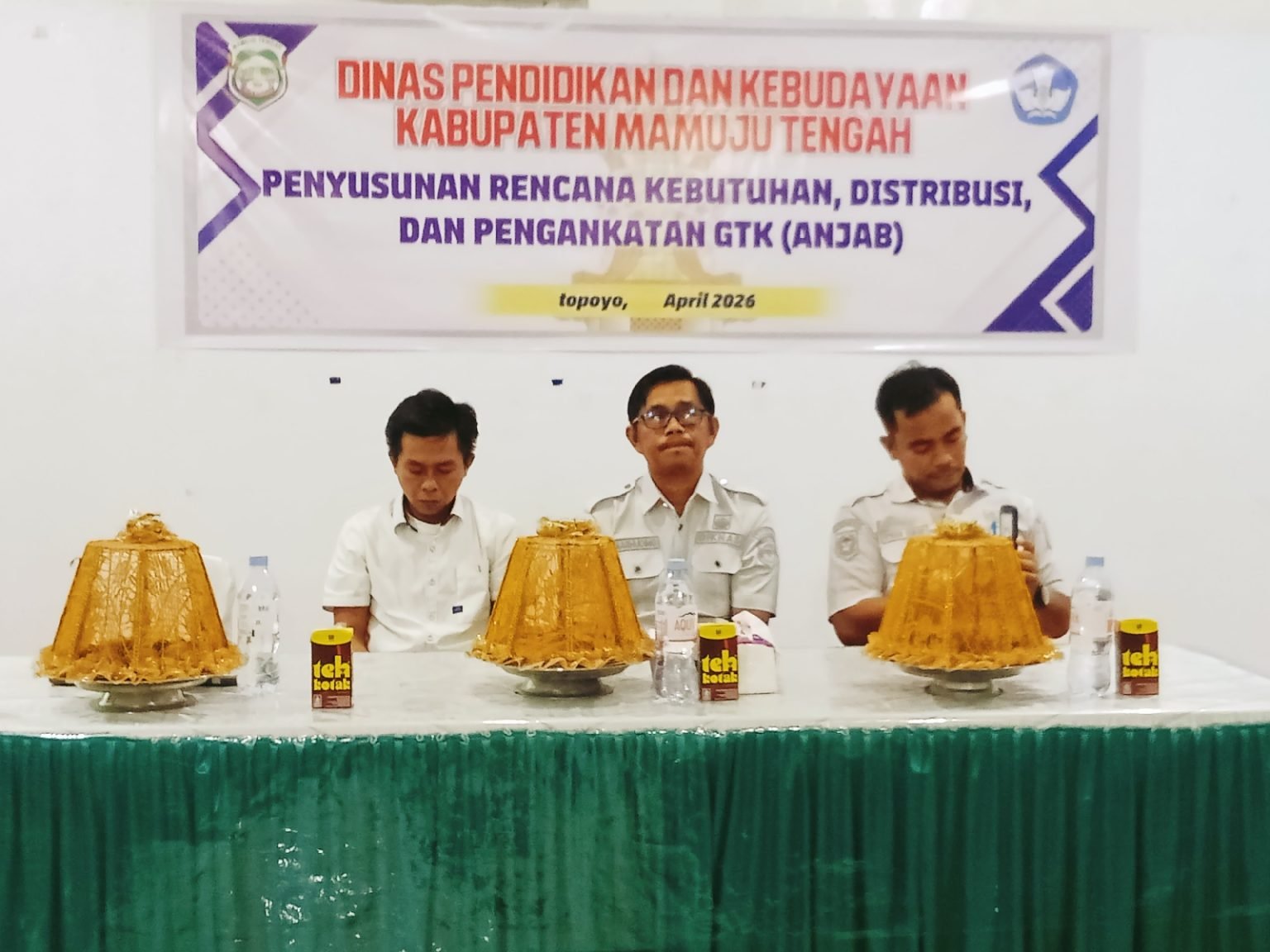 Bugispos, Mamuju Tengah – Dinas Pendidikan dan Kebudayaan (Disdikbud) Kabupaten Mamuju Tengah menyelenggarakan kegiatan Penyusunan Rencana Kebutuhan, Distribusi, dan Pengangkatan Guru dan Tenaga Kependidikan (GTK) melalui Analisis Jabatan (ANJAB). Kegiatan ini berlangsung di Wisma Bahari Indah pada Rabu, 15 April 2026.